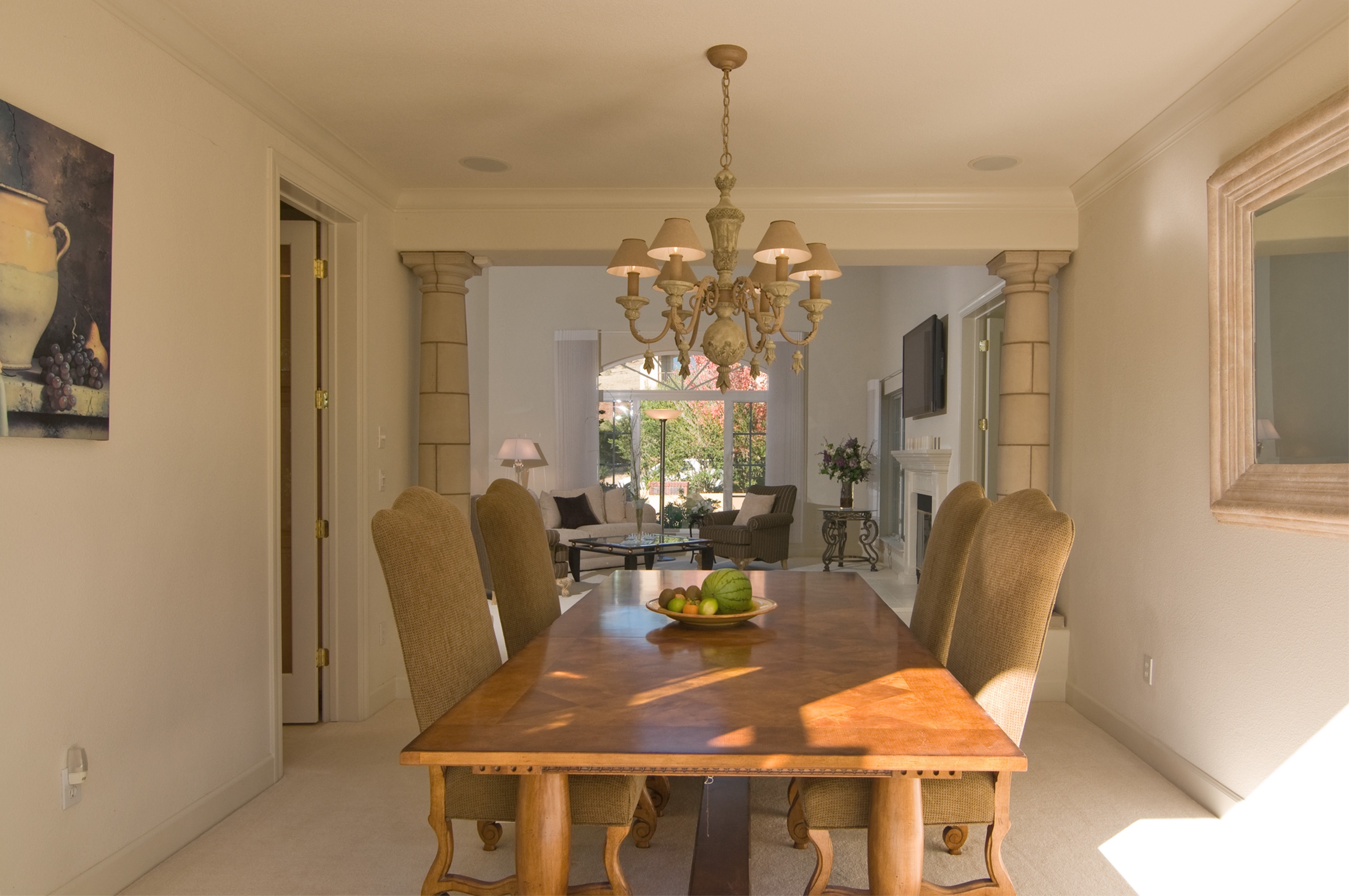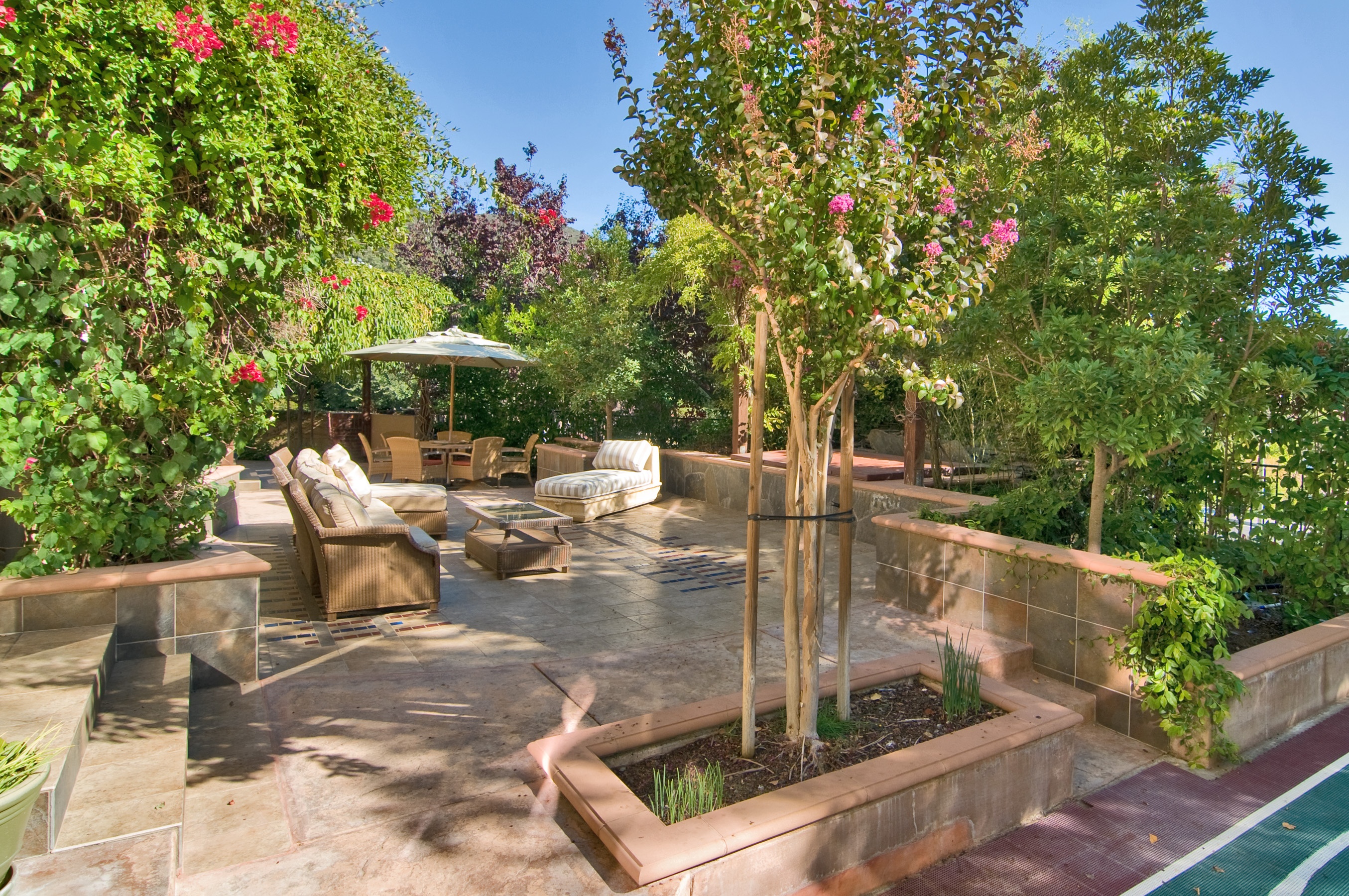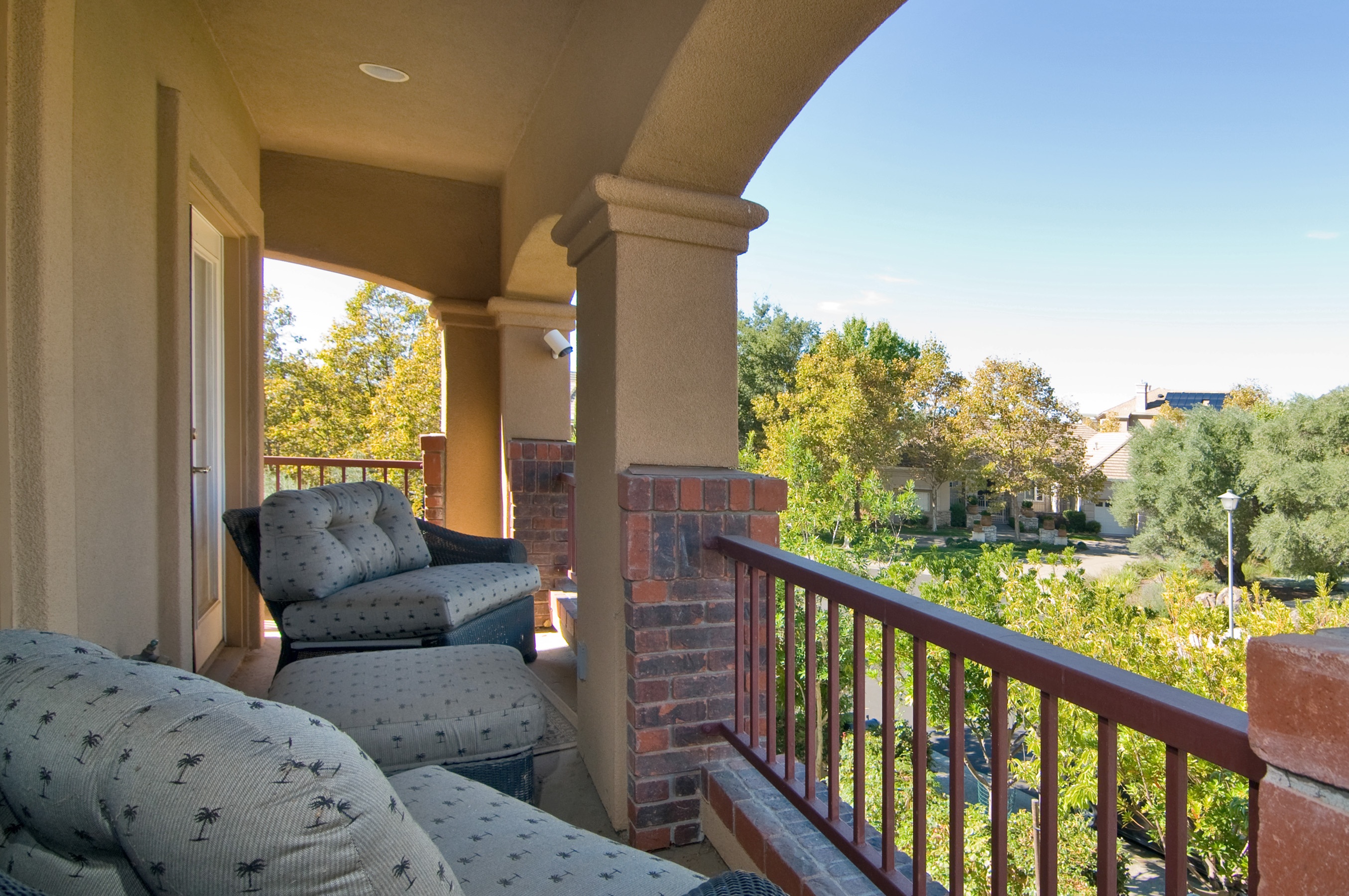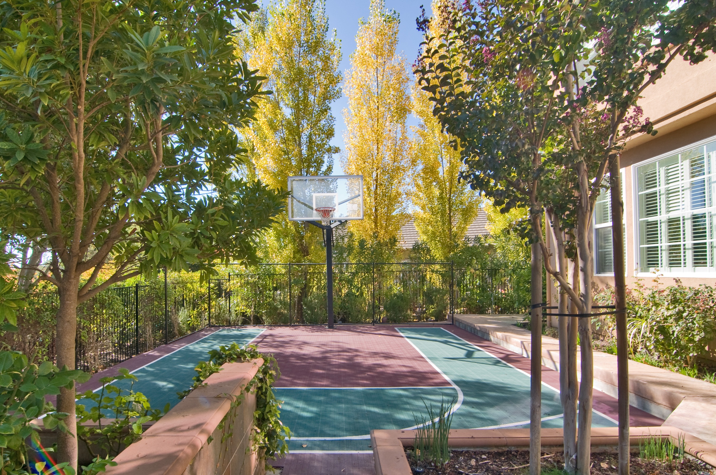 Outside is an expansive, stone and stamped-concrete patio with an in-ground custom spa, a professionally landscaped yard, and a sport court. A transferable membership in the nearby Silverado Country Club is also available.