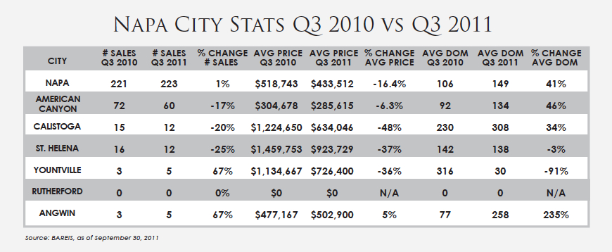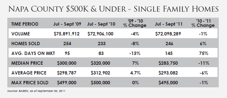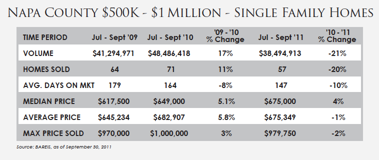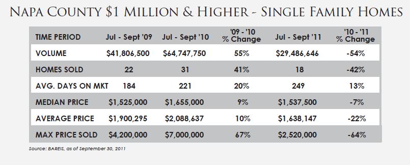 In general, Napa County real estate market conditions are well off the pricing and homes sold from ’06 through the first half of ’08, but buyers with a five plus year investment perspective are seizing attractive opportunities in the market every day.